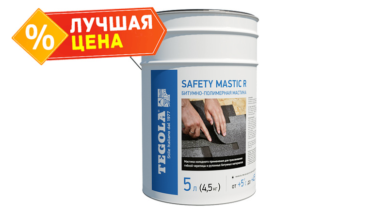 Битумно-полимерная мастика холодного применения для дополнительной фиксации лепестков черепицы и герметизации примыканий, ендов и нахлестов гидроизоляционных мембран (подкладочных ковров). Мастика битумная СЕЙФИТИ МАСТИК представляет однородную клеевую массу, состоящую из битума, бутадиен-стирольного термопласта, наполнителя, растворителя и технологических добавок. Обеспечивает надежное соединение битумной черепицы к различным основаниям: кирпичной кладке, бетону, металлу, дереву и др. По составу мастика СЕЙФИТИ МАСТИК полностью соответствует составу гибкой битумной черепицы и не вызывает деформации.