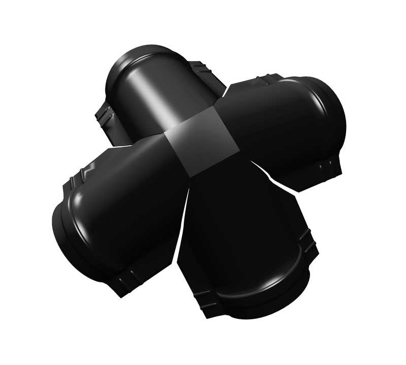 Четверник полукруглого конька применяются в качестве соединения полукруглых коньков на шатровых кровлях.