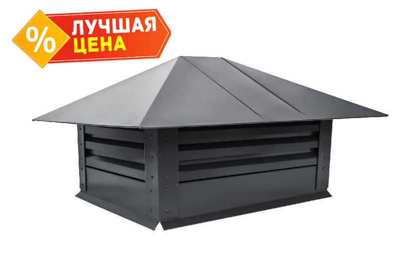 Дымник на трубу с жалюзи 520х390мм 0,5 GreenCoat Pural BT с пленкой RR 23 темно-серый (RAL 7024 мокрый асфальт)
