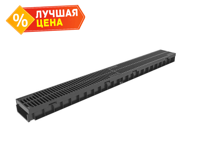 Комплект Gidrolica Light: лоток водоотводный ЛВ -10.11,5.5,5 - пластиковый с решеткой РВ- 10.11.50 пластиковой щелевой, кл. A15 (08097)