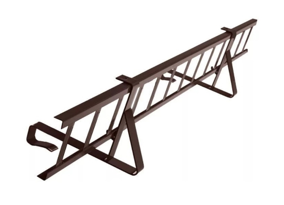 Снегозадерживающая решетка представляет собой конструкцию из высококачественной стали, окрашенную в черный цвет. Размеры решетки составляют 2,5 метра в длину и 0,2 метра в ширину, что делает ее идеальной для использования на различных типах крыш. Материал, из которого изготовлена решетка, проходит специальную обработку методом ФЭЗ (фосфатирование и электрофорез), что обеспечивает высокую устойчивость к коррозии и долговечность изделия. Конструкция решетки продумана таким образом, чтобы эффективно задерживать снег на крыше и предотвращать его сход, что особенно важно в регионах с обильными снегопадами.