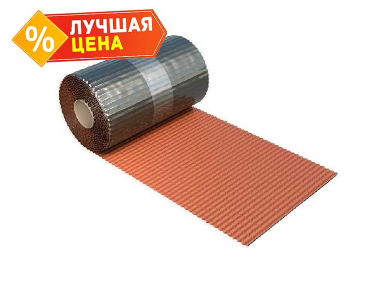 Рулонный материал из полиизобутилена, армированный алюминиевой сеткой, с самоклеящимися бутиловыми полосами на нижней стороне полотна и защитной антиадгезионной пленкой.