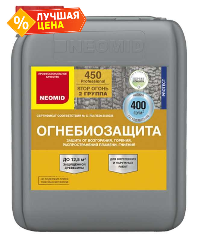 Огнебиозащита NEOMID 450 - 2 (2 группа) 10 кг, готовый, тоннированный (канистра)