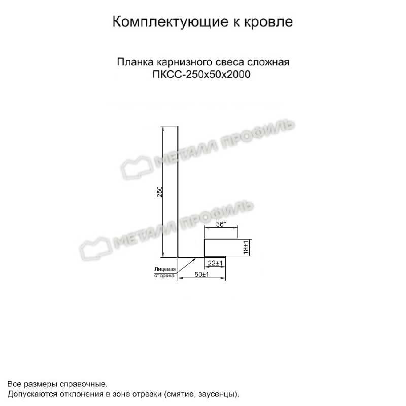Планка карнизного свеса сложная 250х50х2000 NormanMP (ПЭ-01-1015-0.5)