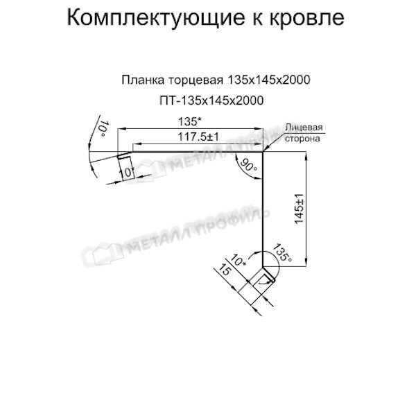 Планка торцевая 135х145х2000 (ПЭ-01-9002-0.5)