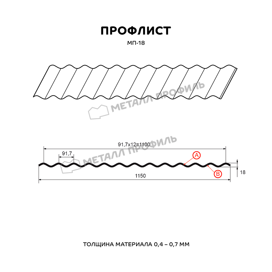 Профиль МП-18 имеет толщину 0,5 мм, что обеспечивает ему прочность и долговечность. Он изготовлен из металла высокого качества, что делает его устойчивым к коррозии и воздействию внешних факторов.