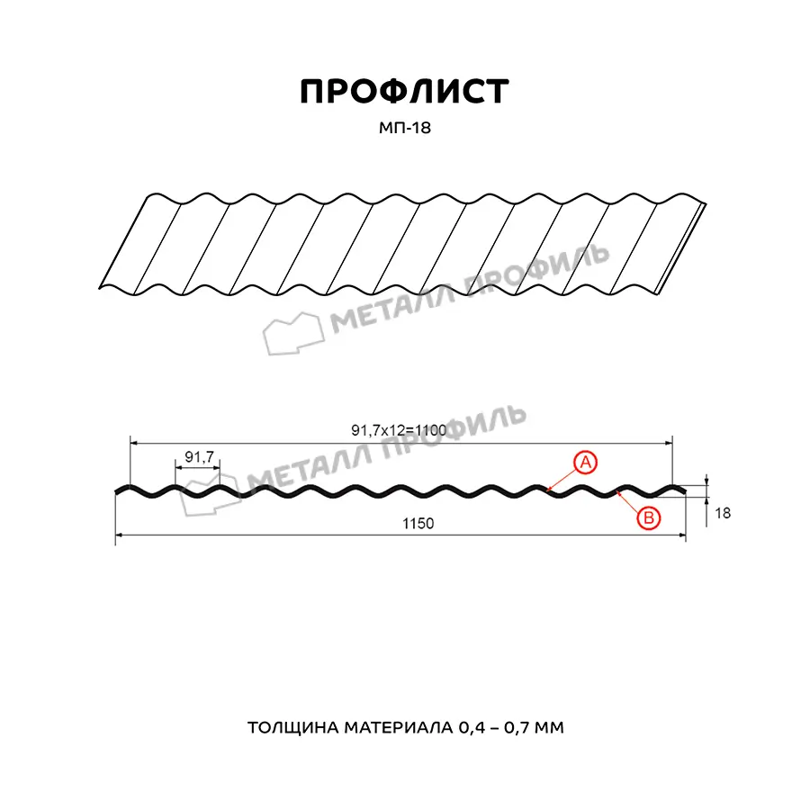 Профлист Металл Профиль МП-18 0,55 Цинк Бесцветный | B - это качественный материал для строительства и отделки. Он изготовлен из металла толщиной 0,55 мм и покрыт цинком, что обеспечивает ему долговечность и защиту от коррозии.