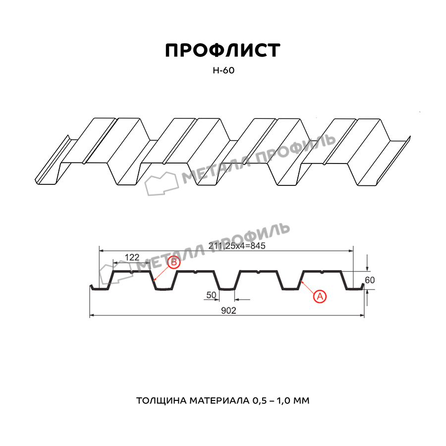 Профиль Н-60 обладает высокой прочностью и устойчивостью к внешним воздействиям, что делает его идеальным выбором для использования на крышах, фасадах и заборах.