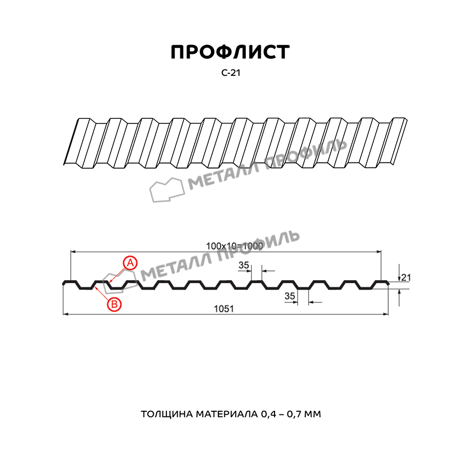 Профиль С-21 обладает высокой прочностью и устойчивостью к воздействию различных погодных условий, что делает его идеальным выбором для наружных работ.