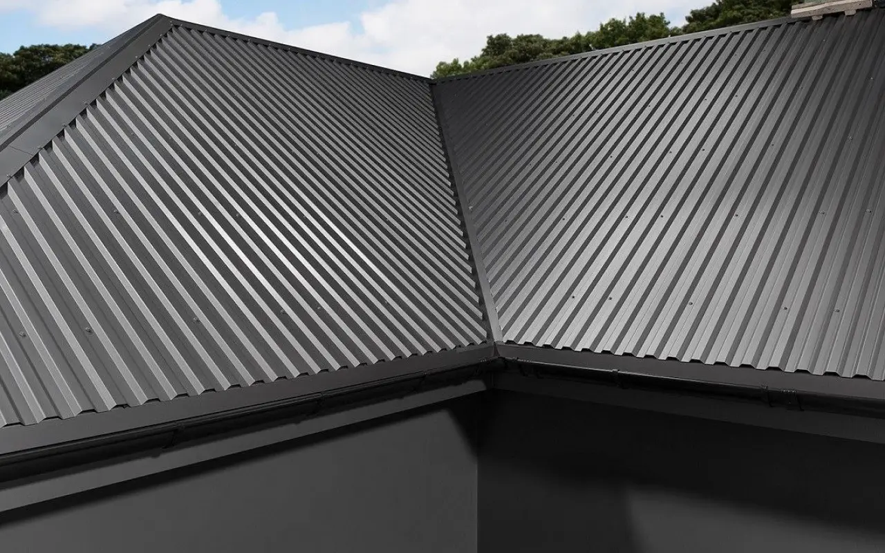 Покрытие профлиста выполнено по технологии полиэстер, что придает ему дополнительную защиту от коррозии и ультрафиолетовых лучей. Цвет RAL 9006 Белый алюминий придает кровле эстетичный и современный вид.