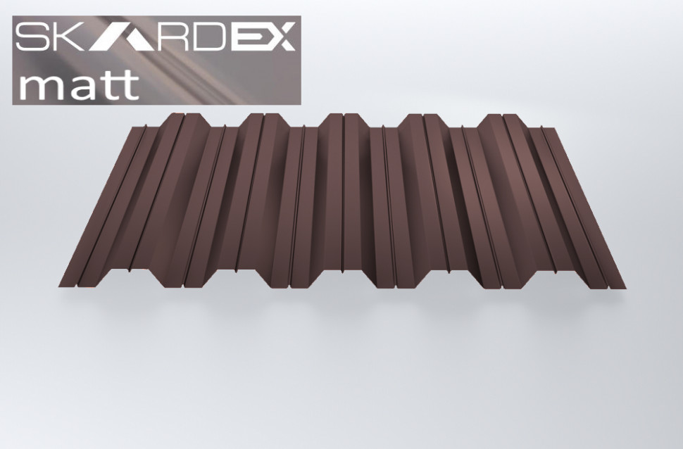 Благодаря матовой поверхности и яркому оттенку RAL 8017, профнастил SteelX НС35 SKARDEX прекрасно впишется в любой архитектурный стиль и придаст вашему дому элегантный вид.
