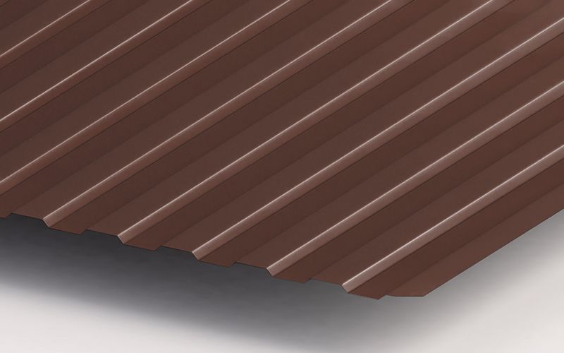 Профнастил ЮджинСтрой С8 с покрытием из полиэстера толщиной 0,7 мм в цвете Ral 8017 шоколад - отличный выбор для кровли и обшивки зданий. Этот материал обладает высокой прочностью и стойкостью к внешним воздействиям, что обеспечивает долгий срок службы.