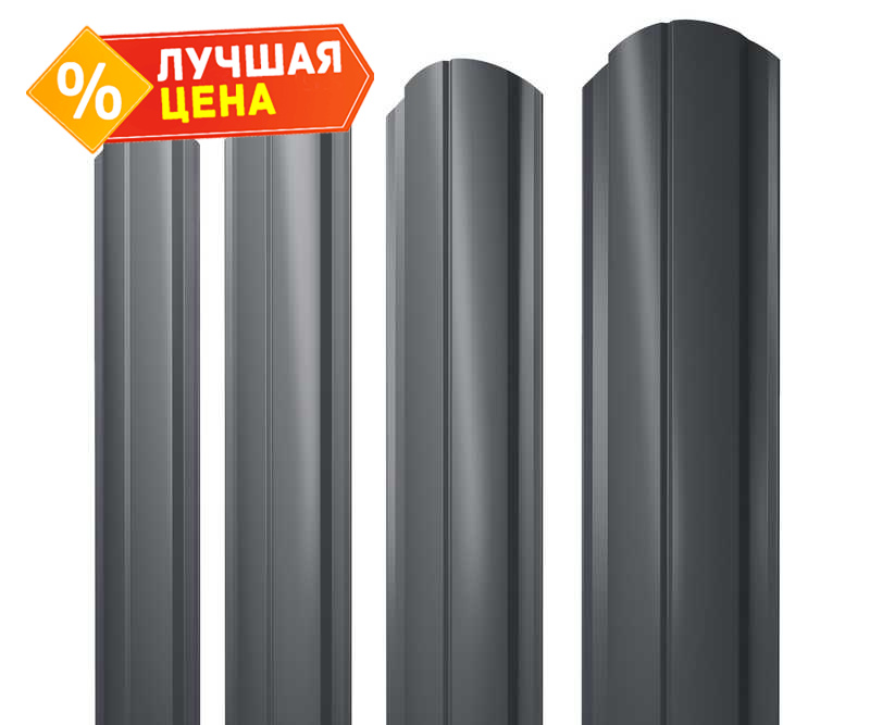 Штакетник Полукруглый Slim фигурный Grand Line 0,4 Полиэстер матовый - double RAL7024 Мокрый Асфальт