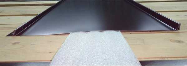 Размещать следует по центру фальцевой картины. На обрешетке можно закреплять строительным степлером. Расход: 1 п.м ленты на 1 п.м фальца.