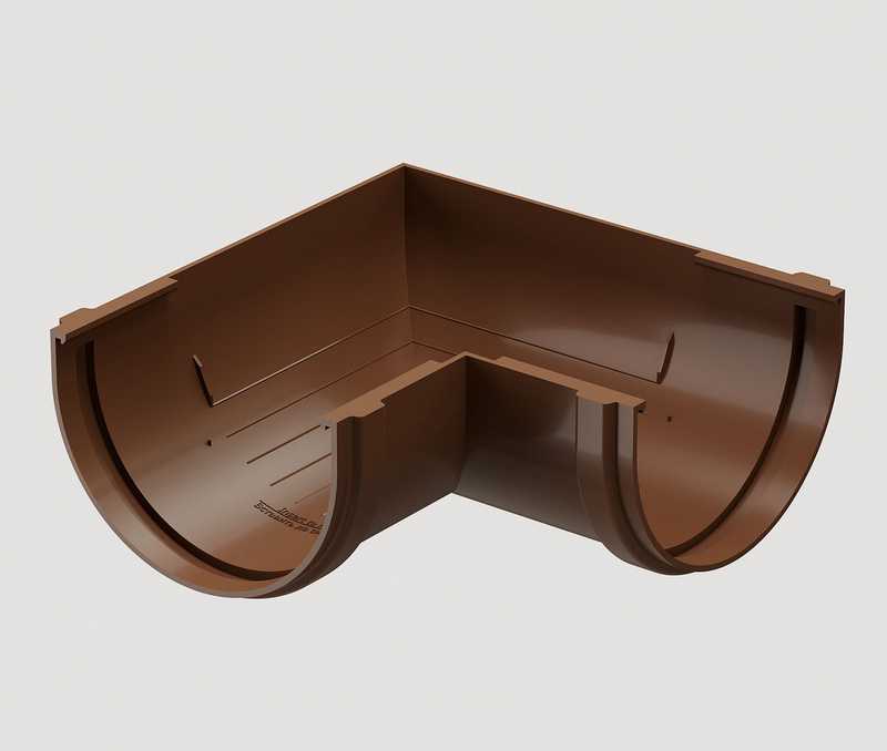 Угловые элементы устанавливаются как на внешних, так и на внутренних углах кровли и предназначены для соединения желобов.