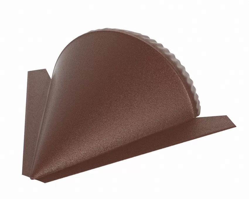 Конусная заглушка конька полукруглого. Устанавливается на окончании хребтов при монтаже полукруглого конька. Придает кровле завершенный вид. Производится в типоразмерах R90 и R120.